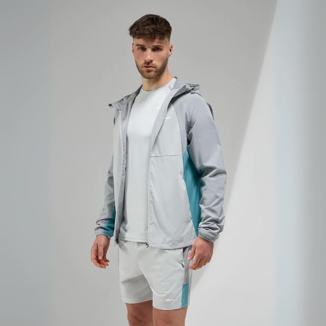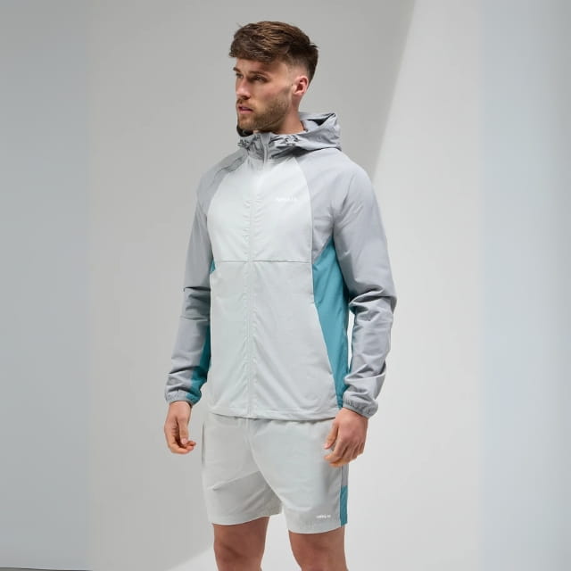 Step into focus with the Neklix Focus Tracksuit Hood, a sleek and functional top designed for movement, style, and everyday versatility. Tailored in a modern light gray tone with bold teal side panels, this hooded jacket delivers a clean, athletic aesthetic that transitions effortlessly from gym to street.