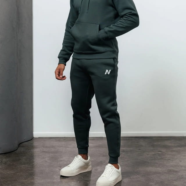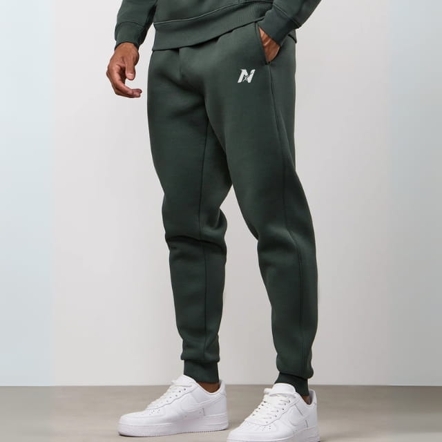 The dark green shade adds a bold yet versatile look that pairs seamlessly with hoodies, sweatshirts, or tees. Its slim-fit tapered leg design creates a clean, modern silhouette that complements both athletic and casual outfits.